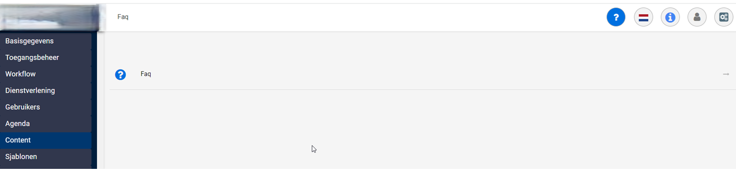 De veelgestelde vragen worden door de beheerder aangemaakt vanuit het Adminportaal. Ga in het Adminportaal naar Content en kies vervolgens voor Faq.