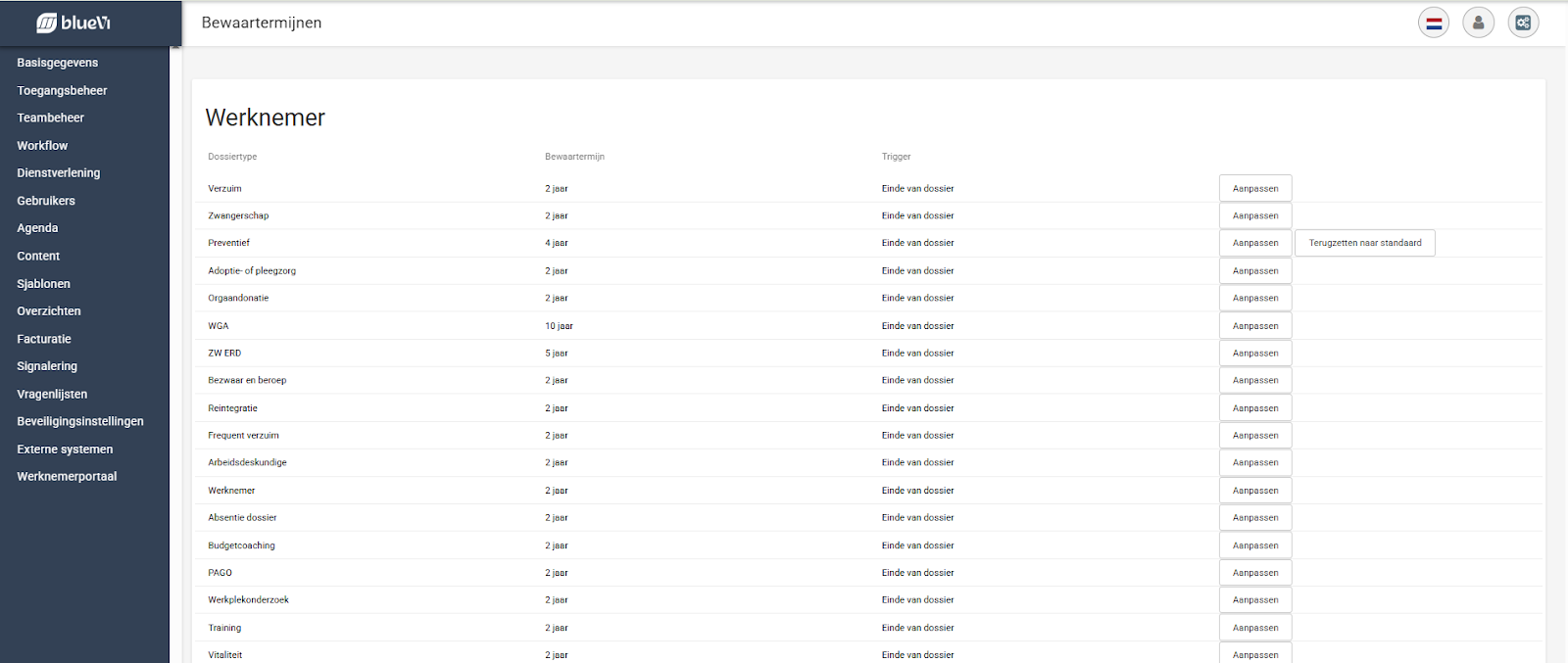 Punt 3 (het doorvoeren van de standaard bewaartermijnen) en punt 4 (uitbreiding voor dossiers waarin sprake is van blootstelling aan gevaarlijke stoffen) volgen op een later moment. We houden je hiervan op de hoogte.