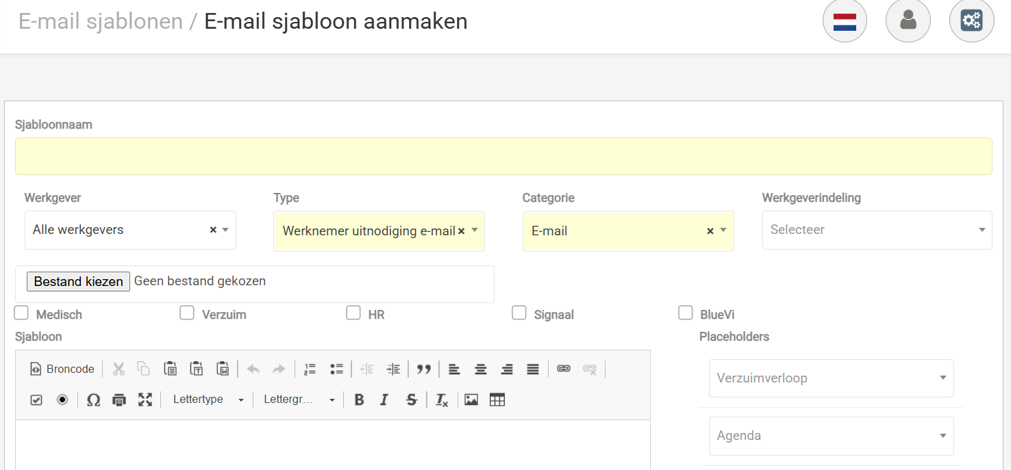 Volg deze stappen om een 'Werknemer uitnodiging e-mail' sjabloon aan te maken en indien nodig aan te passen: